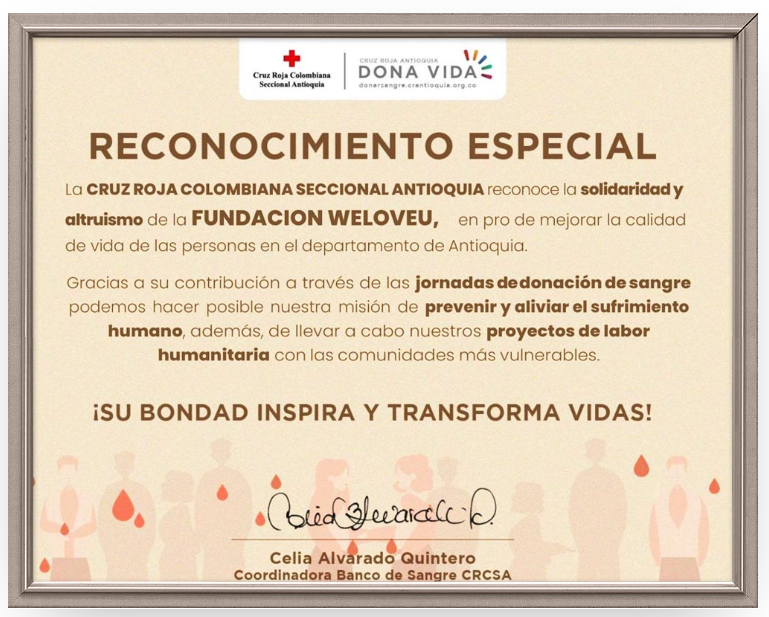 콜롬비아적십자사 특별감사장-국제위러브유운동본부(회장 장길자) 본문
