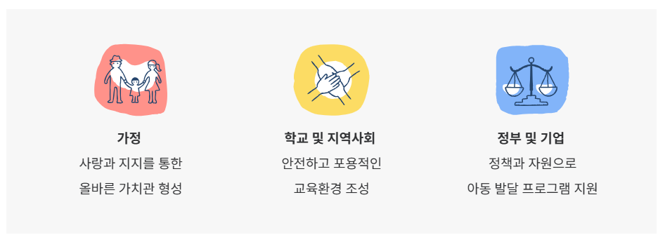 가정, 학교, 지역사회, 정부, 기업 등 모든 사회 구성원이 협력할 때