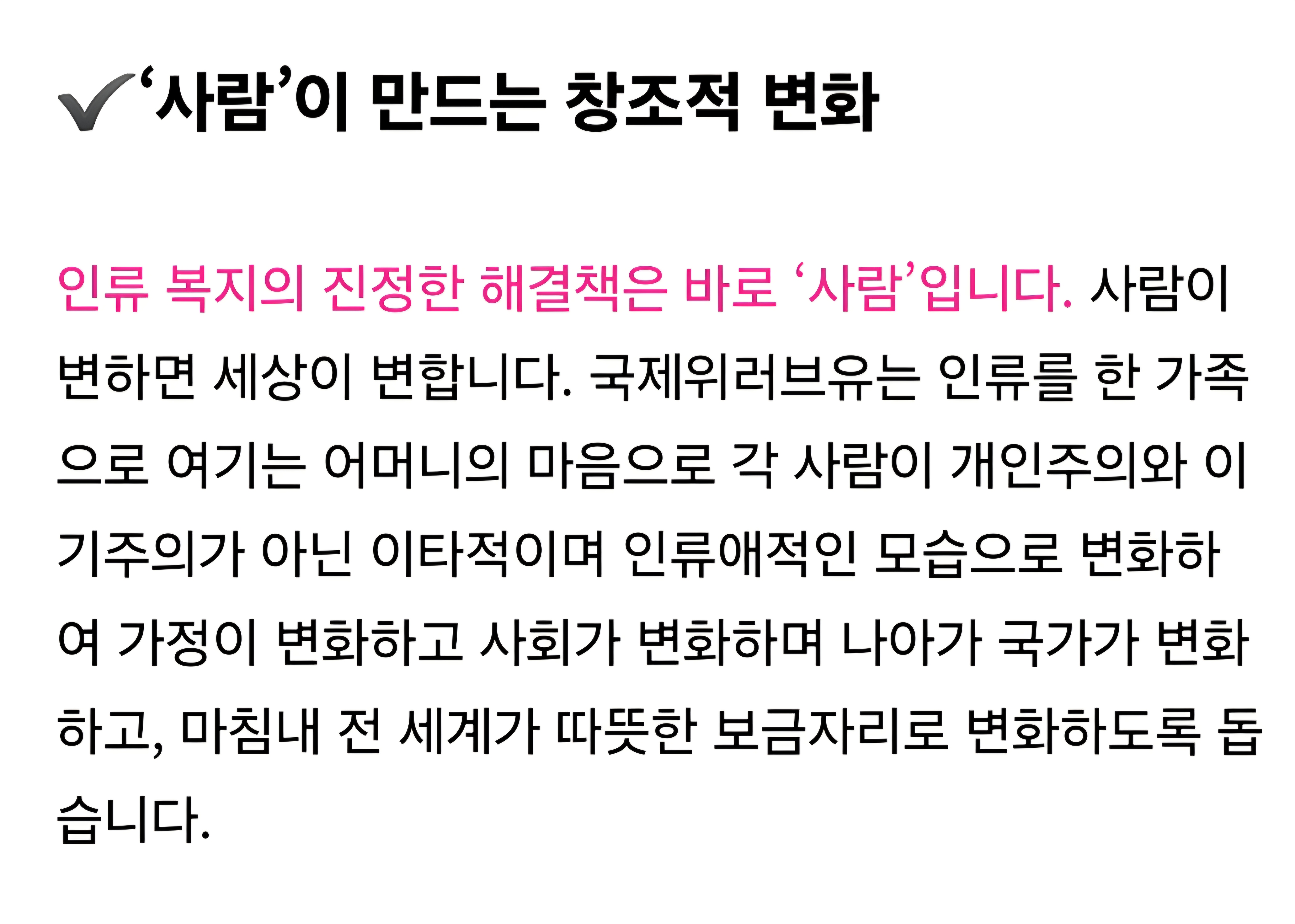 국제위러브유운동본부(회장-장길자)ㅡ 설립이념~♧ 본문