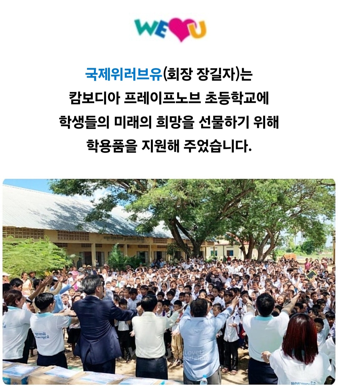 캄보디아 학용품 지원 - 국제위러브유운동본부(회장 장길자) 본문