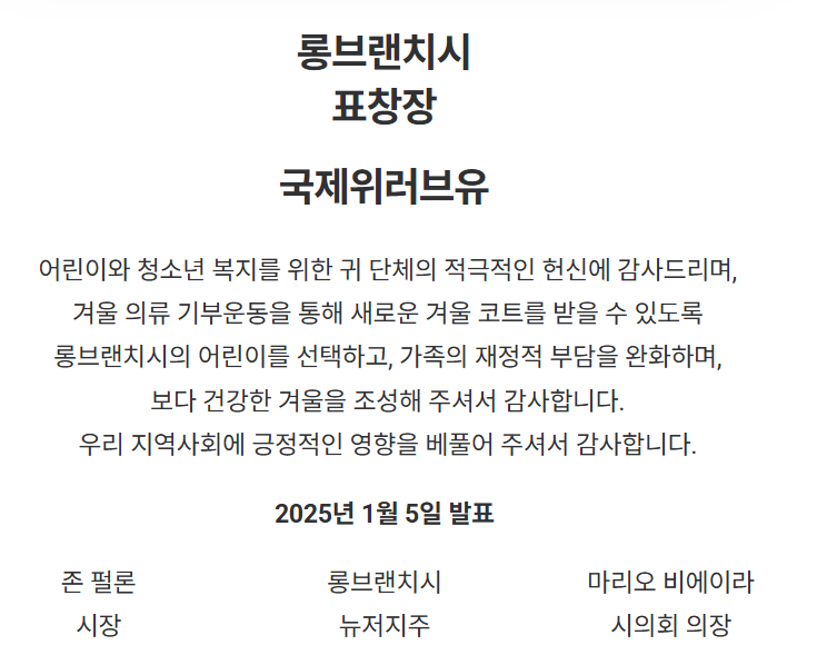 | 미국 뉴저지 주지사 감사편지 - 국제위러브유운동본부(회장 장길자) (8) | 2025.10.28 |
